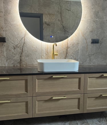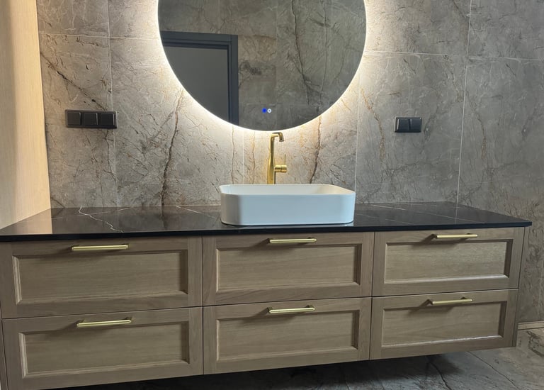 Elegantiški kvarco vonios stalviršiai, pritaikyti jūsų interjerui.
