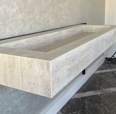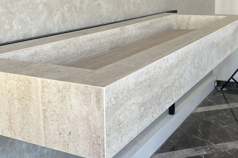 Kvarco stalviršiai, praustuvės, sienų dekoras, palangės